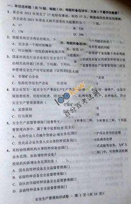 2012年安全工程師《安全生產(chǎn)管理知識》考試試題及答案交流1