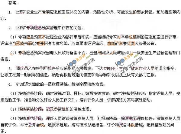 1.說明D煤礦安全生產專項應急預案應補充的內容。