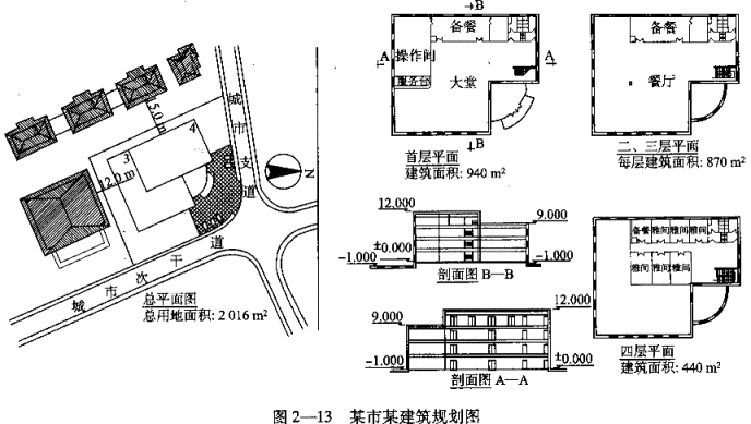 3.某擬建項目位于某市風貌建筑保護街區(qū)內的城市次干道與城市支路的交口處,總用地面積為2016m2,用地性質為辦公建筑,除按有關規(guī)范規(guī)定的要求外,還提出以下規(guī)劃條件,即:建筑限高12m,容積率不大于1.4,建筑密度不大于35%;建筑間距應滿足:南北向大于新建建筑高度的1.5倍,東西向大于新建建筑高度的1.2倍;建筑風格要求與周邊現(xiàn)有建筑相協(xié)調,屋頂須采用坡屋頂形式。圖2-13為該建筑規(guī)劃圖。![]() 請你對圖示方案進行審核,指出存在的問題。 |
