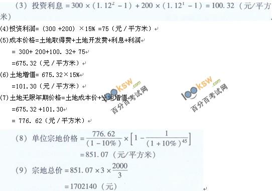 1)計算土地價格:利用成本逼近法計算土地價格