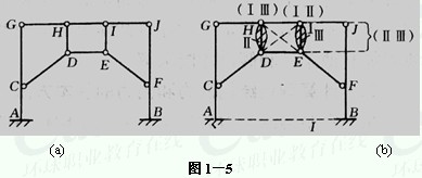 [例1-2] 分析圖1-5(a)所示體系的幾何組成。