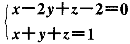 正確答案:C 解題思路:設平面x-2y+z-2=O和平面x+y+z=1的法向量分別是n ={1,-2,1),n ={1,1,1},所求平面法向量n=n ×n = =-3i+3k,方程為一3(x-2)+0(y-0)+3(z+3)=0,選C。 |