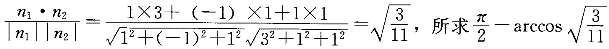 正確答案:C 解題思路:直線 方向向量n = =i-j+k,法平面與n 垂直,直線 方向向量n = =3i+j+k,n 與n 夾角θ,cosθ= ,選C。 |