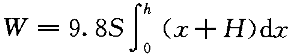| 5.橫截面為S,深為h的水池裝滿水,把水抽到高為H的水塔上,所做的功 為( )。 |