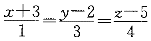 | 5.與平面x-4z=3和平面2x-y-5z=1的交線平行且過點(-3,2,5)的直線方程是( )。 |