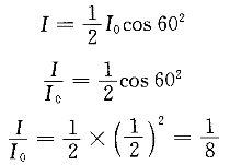 3.光強為I 的自然光垂直通過兩個偏振片。它們的偏振化方向之間夾角為60°,設偏振片無吸收,則與入射光強I 之比為( )。 |