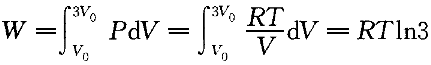 正確答案:B 解題思路:【解析】等溫過程氣體做功為 =8.31×298×1.0986=2.72×10 J【點(diǎn)評(píng)】做此題時(shí)最主要的是要熟記氣體做功公式 ,由PV=(m/M)RT解出壓強(qiáng)P,代入求積分即可。 |