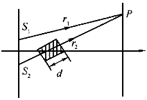 3.在圖示的雙縫干涉實驗中,在S 和P間插入折射辜為n、厚度為d的媒質。則光由S ,S 到P的相位差是、設在折射率為n 的環境中進行該實驗,該光在真空中的波長為λ)( )。![]() |