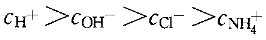 | 3.等體積、等濃度的氨水和鹽酸溶液混合均勻后,混合溶液中各離子平衡濃度由大到小的正確順序是( )。 |