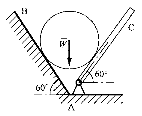 2.一個重力為W的小球夾在光滑斜面AB與光滑平板AC之間,今若使平板AC和水平面的夾角逐漸減小,則球對平板AC的壓力會( )。![]() |