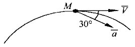 5.點M沿平面曲線運動,在某瞬時。速度大小v=6m/s,那速度大小α=8m/s ,兩者之間的夾角為30°,如圖所示。則點M所在之處曲線的曲率半徑ρ為( )m。![]() |