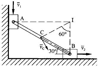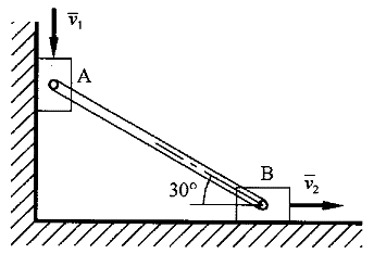 A、B兩物塊用長為l的均質直桿相連,圖示瞬時直桿與水平方向夾角為30°,A物塊以速度 向下運動,兩物塊與直桿的質量均為m。![]() |