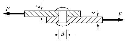 2.圖示板和鉚釘為同一材料,已知板與鉚釘間的擠壓容許應力[σ ]、鉚釘的容許剪應力[τ]之間的關系為[σ ]=2[τ],為了充分提高材料的利用率,則鉚釘的直徑應該是( )。![]() |