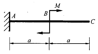 4.圖示懸臂梁截面抗彎剛度為EI,一集中力偶作用于B點。則C點處撓度f 、與C截面轉角θ 分別為( )。![]() |