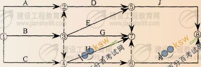 【解析】根據選項,首先按節點編號逐個節點進行,即可找的有兩個終點節點⑦和⑧;箭頭節點編號②小于箭未節點編號③,即為節點編號有誤;其它選項均無。所以選擇BD兩項。