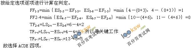 【解析】關鍵工作的判定有兩種方法,其一是利用總時差判定,即總時差最小的工作是關鍵工作。而工作總時差等于工作最遲開始時間與工作最早開始時間之差或工作最遲完成時間與工作最早完成時間之差;其二是利用關鍵線路判定,即關鍵線路上的工作為關鍵工作。其它說法均不正確。