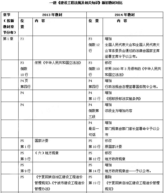 【權威解析】2014年一級建造師《法規及相關知識》新版教材變化
