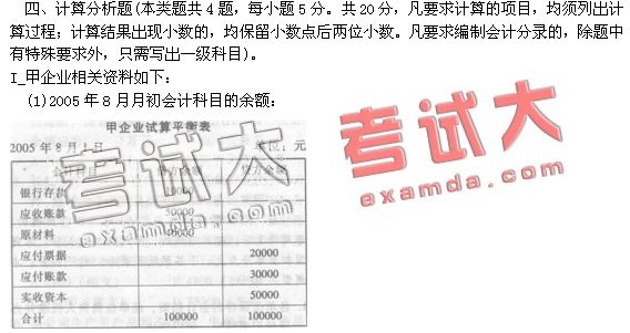 (2)編制甲企業8月31日的試算平衡表。(答案中的金額單位用元表示)