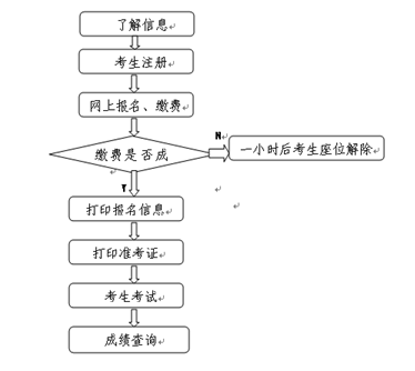 在報名期間登錄系統后,通過《考生報名》模塊進行報名,流程為:閱讀考生須知→選擇考試科目、考點、日期→網上繳費,必須在一小時內完成繳費,否則考生選擇的考點和考試日期信息將與考生解除綁定,考生需重新選擇考點和考試日期進行報名繳費。