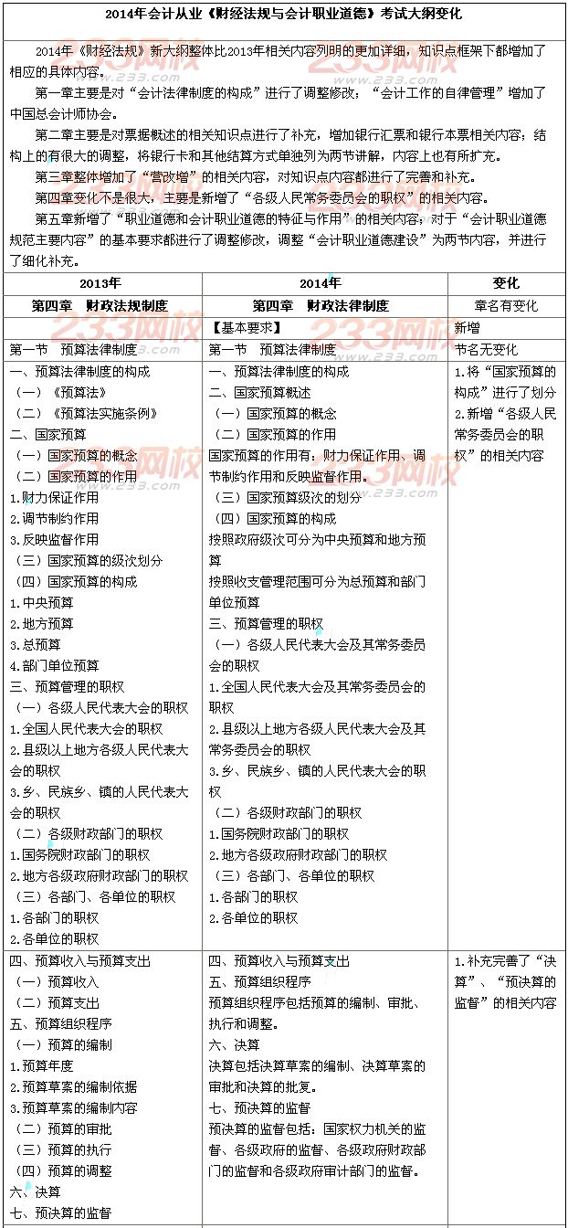 2014會(huì)計(jì)從業(yè)資格《財(cái)經(jīng)法規(guī)》新舊大綱對(duì)比分析