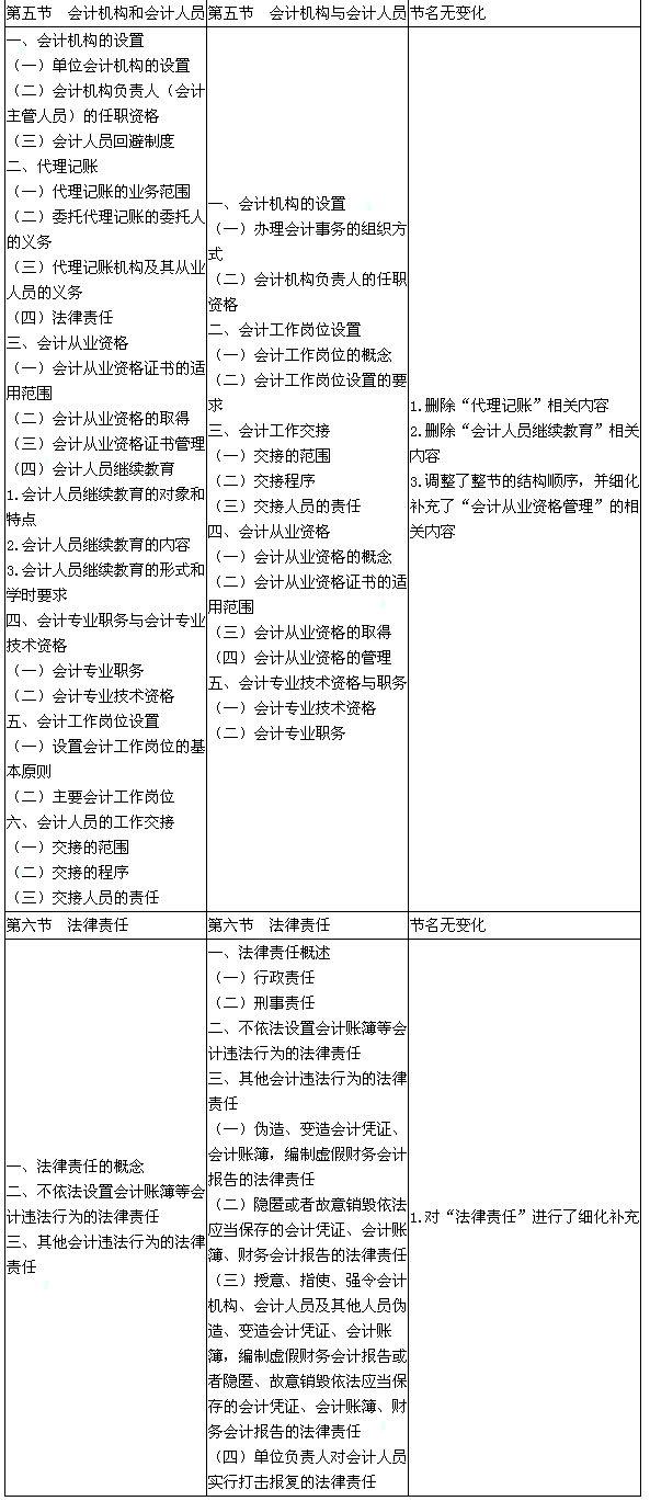 2014會(huì)計(jì)從業(yè)資格《財(cái)經(jīng)法規(guī)》新舊大綱對(duì)比分析