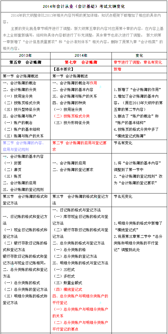 2014會計從業資格《會計基礎》新舊大綱對比分析