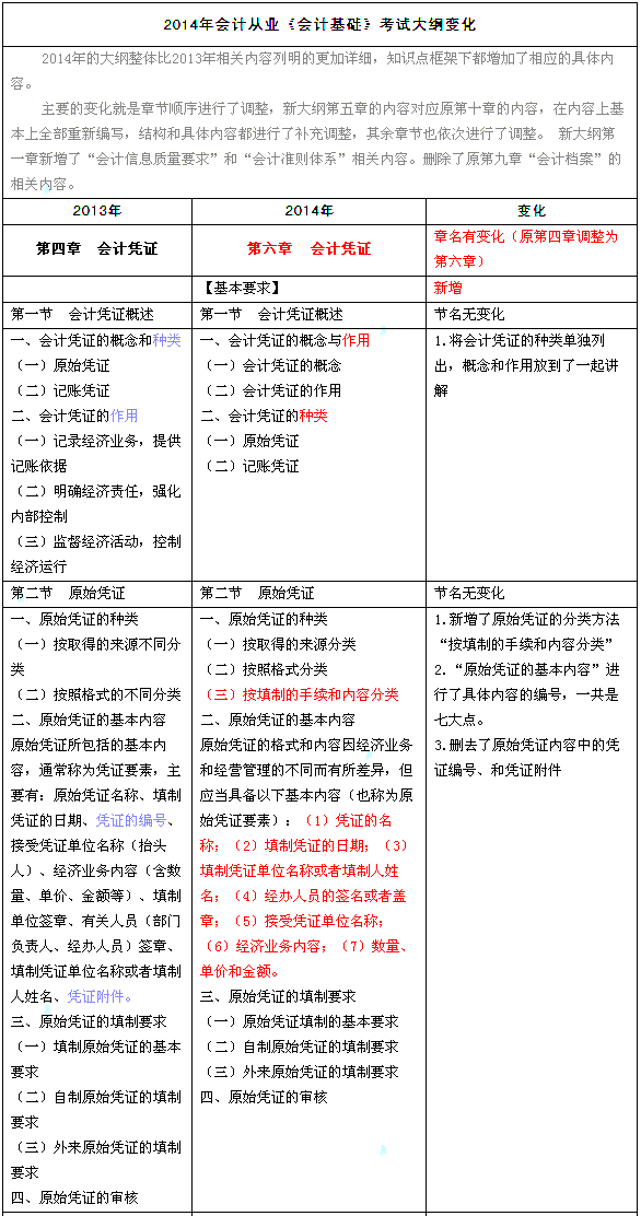 2014會計從業資格《會計基礎》新舊大綱對比分析