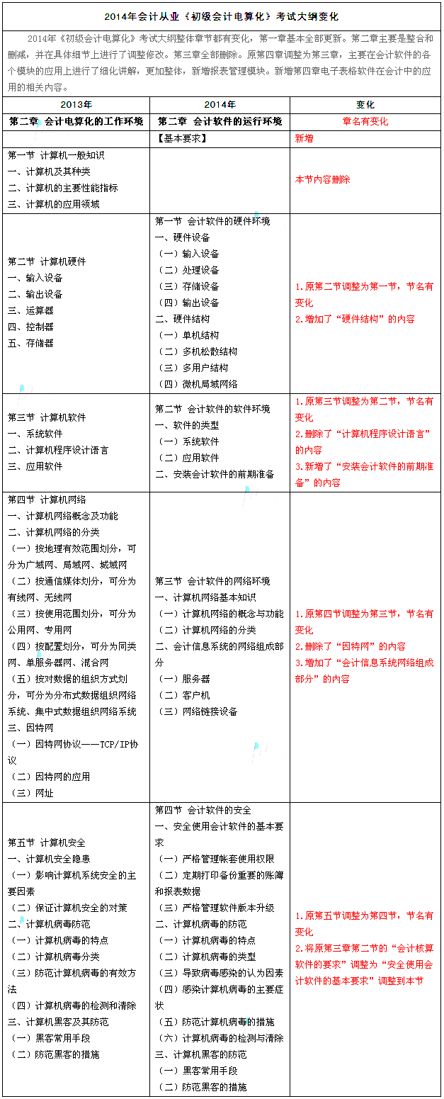 2014會(huì)計(jì)從業(yè)資格《會(huì)計(jì)電算化》新舊大綱對(duì)比分析