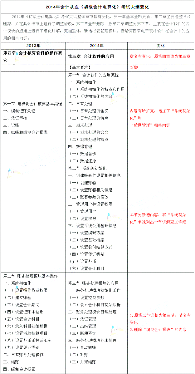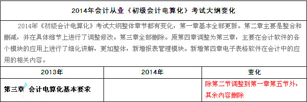 2014會計從業資格《會計電算化》新舊大綱對比分析