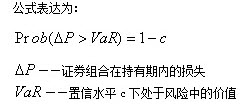確切地說,VaR描述了“在某一特定的時期內,在給定的置信度下,某一金融資產或其組合可能遭受的最大潛在損失值”;或者說“在一個給定的時期內,某一金融資產或其組合價值的下跌以一定的概率不會超過的水平是多少”。
