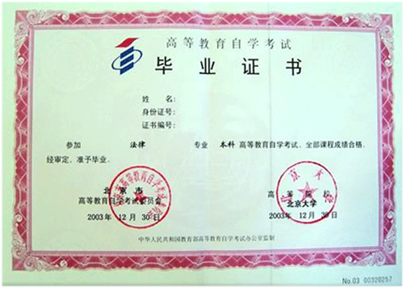 自考專升本證書樣本