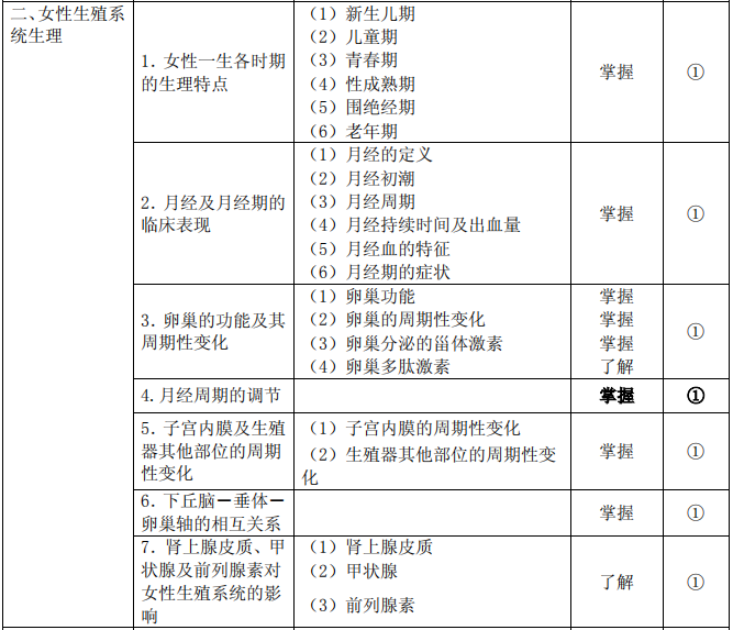 | 3.內生殖器 | 內生殖器及其功能 | 掌握 | ① | |
