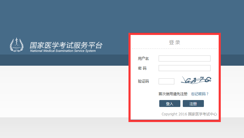 (三)在“國家醫學考試服務平臺”登錄界面填寫正確的用戶名、密碼及驗證碼;