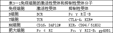 1 .分子水平的免疫調節:通過 PTK 參與的激活信號轉導和 PTP 的負反饋調節。免疫細胞激活信號轉導中的兩種對立成分 ( 蛋白質的磷酸化和去磷酸化、蛋白酪氨酸激酶 PTK 和蛋白酪氨酸磷酸酶. PTP) 和兩類功能相反的受體 ( 激活性受體——帶有 ITAM ——招募: PTK ——啟動激活信號轉導;抑制性受體一帶有 ITIM ——招募 PTP ——抑制激活信號轉導 ) ,其調節作用通過信號轉導實現 ( 信號轉導涉及蛋白質磷酸化和脫磷酸化,分別由 PTK 和 PTP 促成細胞激活中的一組對立成分 ) 。其中抑制性受體有: