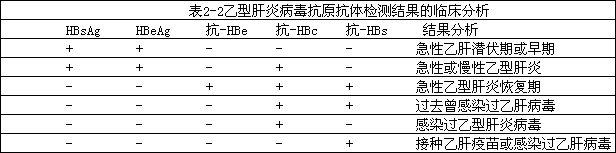 乙型肝炎病毒抗原抗體系統(tǒng)檢測(cè)的意義極為復(fù)雜,在診斷疾病及評(píng)價(jià)結(jié)果時(shí)必須對(duì)幾項(xiàng)指標(biāo)進(jìn)行分析,方能作出結(jié)論 ( 見(jiàn)表 2 ~ 2) 。