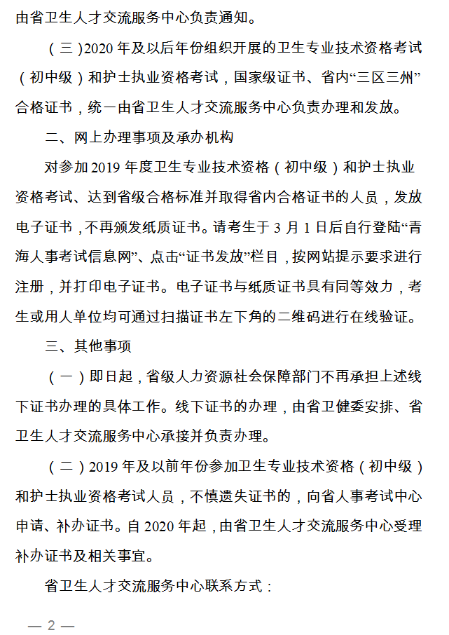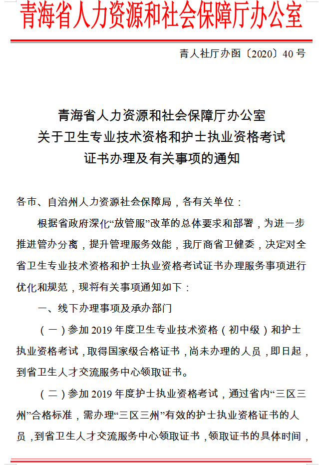 青海省2019年衛(wèi)生資格考試證書辦理及有關(guān)事項的通知