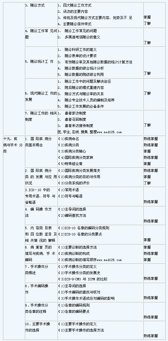 2014年病案信息技士衛生資格考試大綱-專業實踐能力