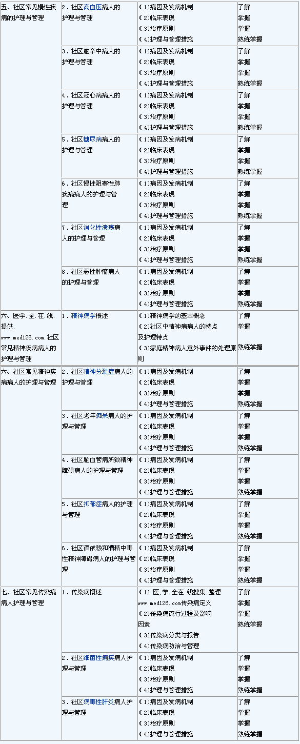 2014年社區主管護師中級師考試大綱-專業知識和專業實踐能力: