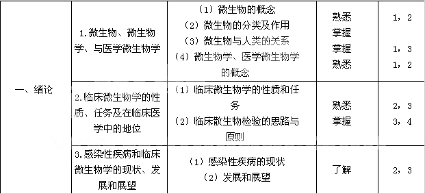 | (4)微生物學檢測 | 熟悉掌握 | 3,4 | ||