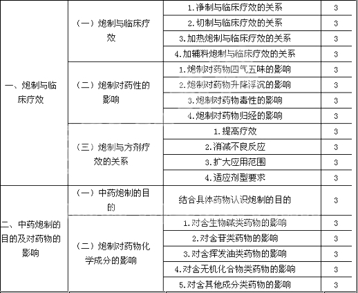 | 六、飲片切制 | (一)飲片切制的目的 | 結合具體藥物理解目的 | 3 | |