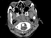 4.女,8歲,頭痛,鼻塞半年余,CT如圖所示,最可能診斷為 ( )![]() ![]() ![]() ![]() |
