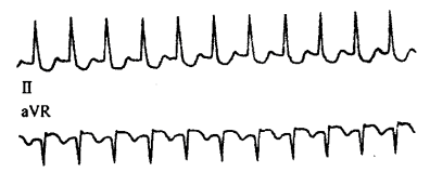 患者,男性,36歲。發(fā)作性心悸3年,間歇期無(wú)不適。近年來(lái)發(fā)作,次數(shù)頻繁,今再來(lái)院。查體:血壓90/60mmHg,心電圖如下