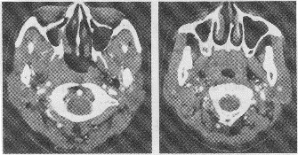 2.患者已行頸部CT掃描,主要圖像如下,結合CT表現,最可能的診斷為![]() |