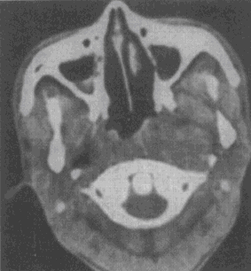 1.男性,50歲。涕中帶血絲1個月余,無發熱及咽部腫痛。CT檢查見圖所示,應首先懷疑以下何種疾病