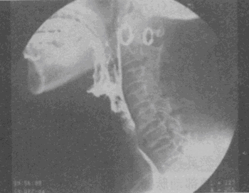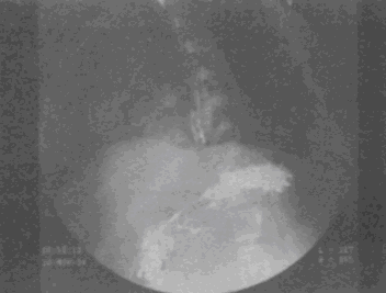 正確答案:C解題思路:食管上段有充盈缺損表現,管腔狹窄,結合病史考慮食管癌可能。