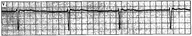 4.患者女性,78歲,冠心病史20余年,頭暈、黑嚎半年。心電圖檢查見下圖,應診斷為![]() |