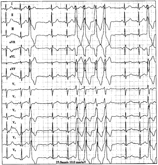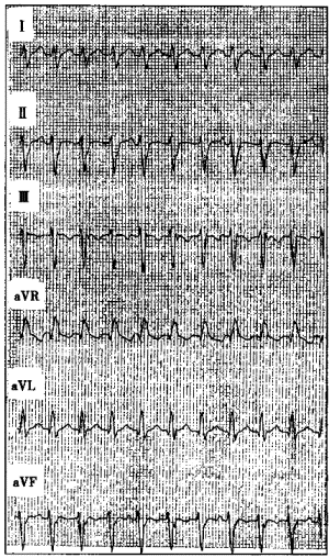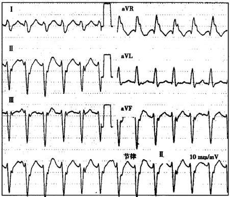 | 6.圖中短陣寬QRS波心動過速應診斷為 |