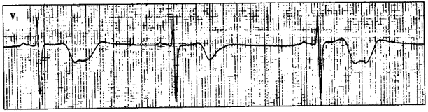 4.患者男性,30歲,反復暈厥多次。某日就診時再次發生暈厥,暈厥時心電圖如下圖所示,應診斷為![]() |