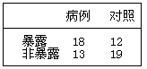 | 1.對1945~1975年間1000名從事油漆鐳盤的表廠女工,與從事電話員工作的1000名婦女的骨癌發生情況進行對比,其間從事油漆鐳盤的工人中發生了20例,電話員中發生了4例骨癌。從事油漆鐳盤工人發生骨癌的相對危險度是 |