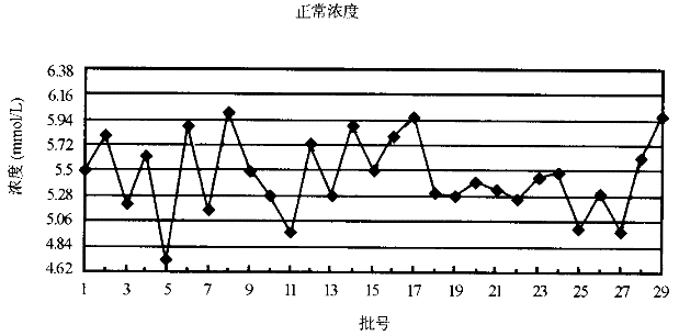 1.下面為對血糖不同濃度進(jìn)行測定的結(jié)果![]() 則此方法的誤差類型是 |